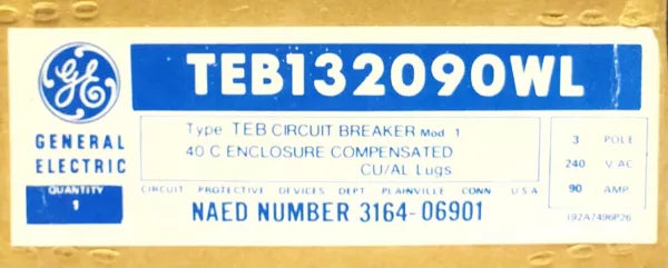 General Electric TEB132090WL 3 Pole 90 AMP Type TEB Circuit Breaker
